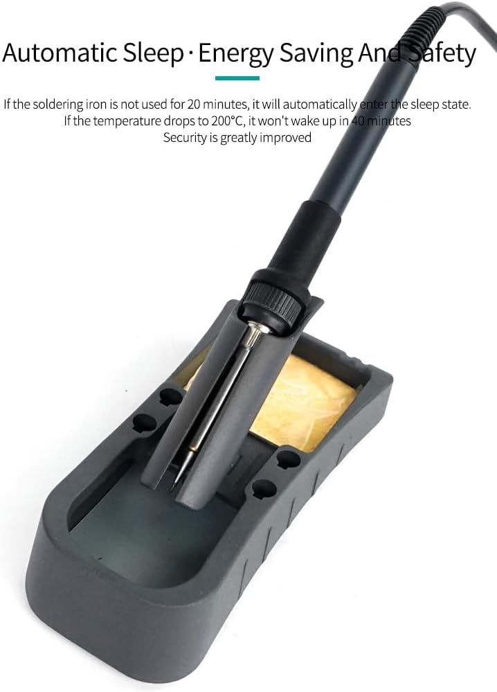 Estación de soldadura sin plomo potente y segura contra descargas electrostáticas (90 W) con pantalla LCD digital. Ajuste de temperatura de 80 °C a 480 °C, estabilidad a alta temperatura (±2ºC).