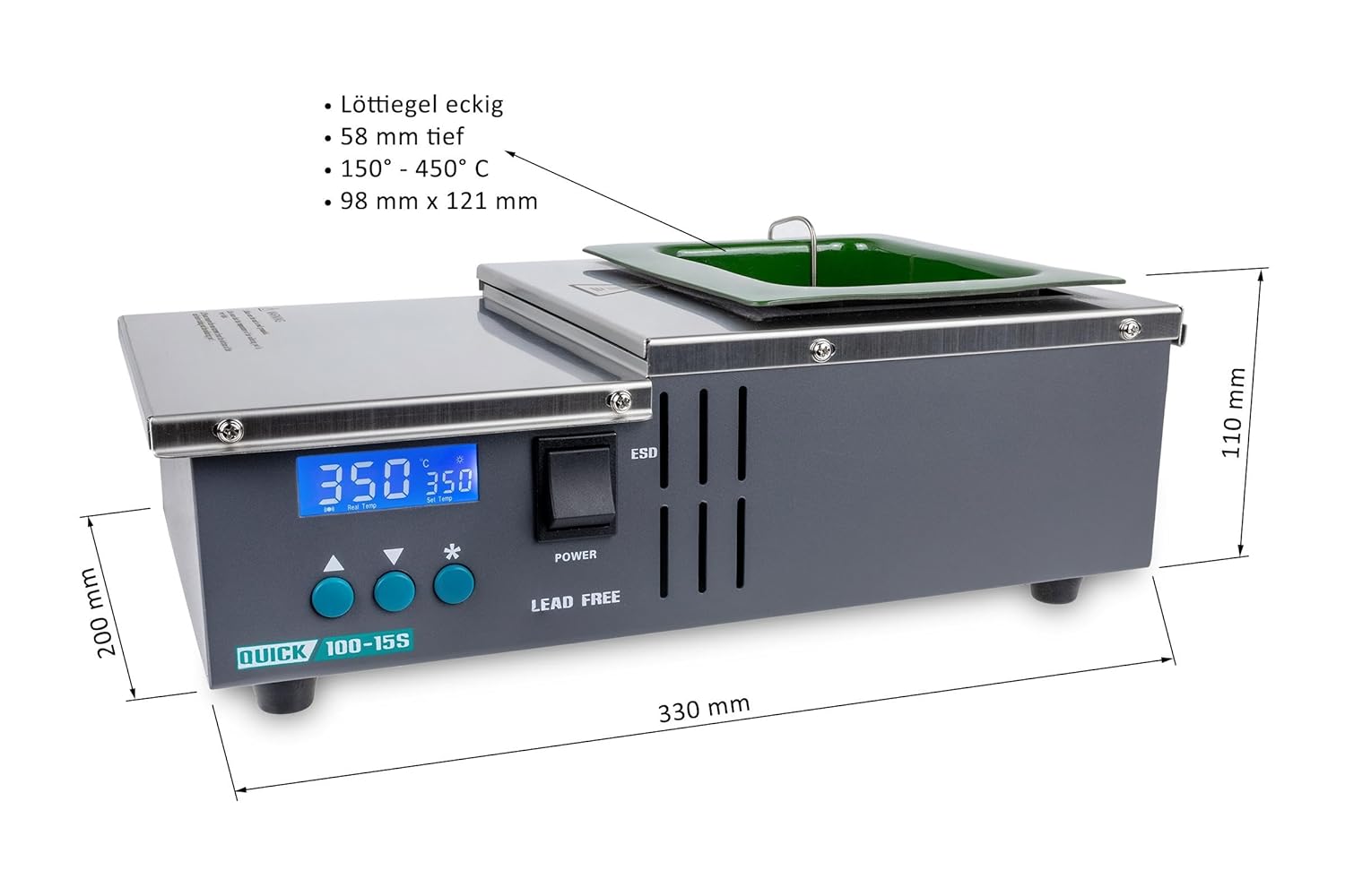 Pocillo de Soldadura Quick 100‑15S | Sin Plomo | 600 W